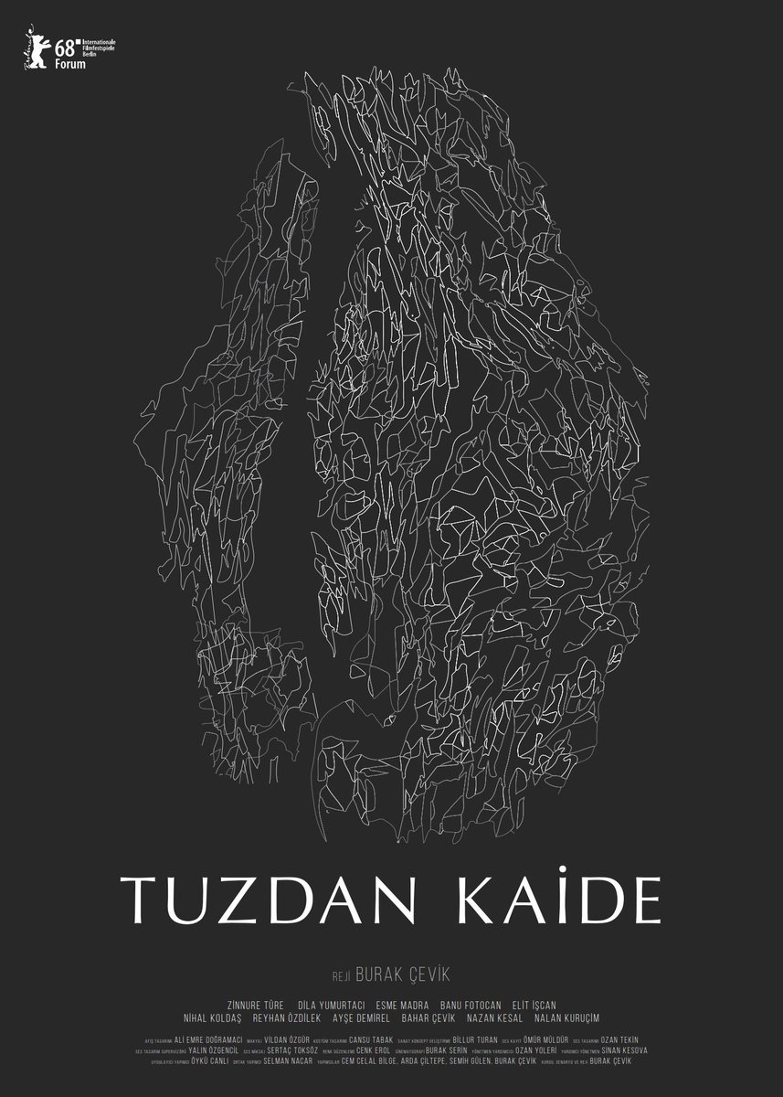 Büyük bir sinema sevdalısı olduğunu uzun zamandır Fol Sinema topluluğu adı altında yaptığı gösterimler ve festivaller için yaptığı alternatif çalışmalar ile bilinmekte olan Burak Çevik, ilk uzun metrajı Tuzdan Kaide’ye imza attı. Berlin Film Festivali Forum bölümünde prömiyerini yapacak olan film, aynı zamanda Caligari Film Ödülü’ne de aday. Ülkemizde de bu yıl perdede izleme şansı bulacağımız filmi dört gözle beklemekteyiz.