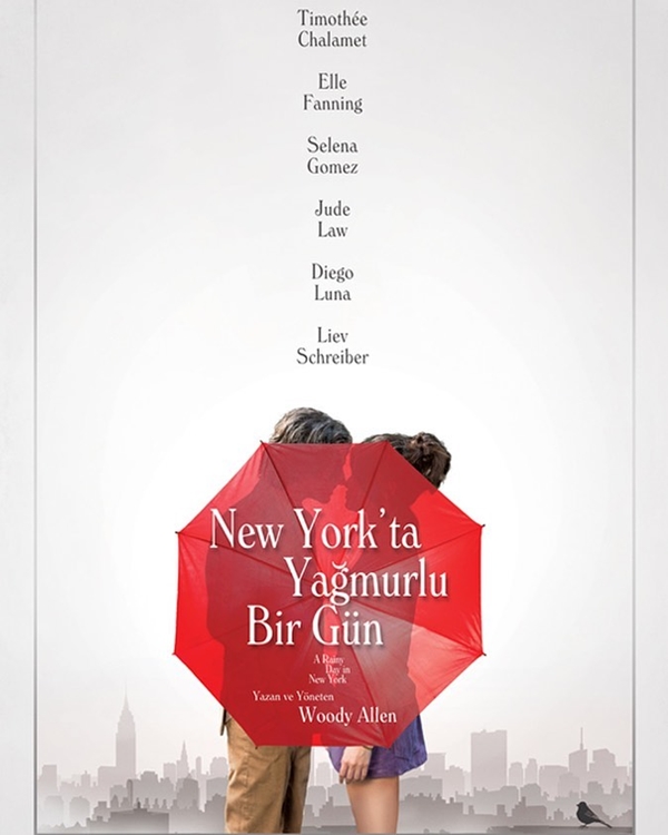 Woody Allen’in yönettiği New York’ta Yağmurlu Bir Gün (A Rainy Day in New York) filminin oyuncu kadrosunda Timothée Chalamet, Elle Fanning, Selena Gomez, Jude Law, Diego Luna, Liev Schreiber yer alıyor.