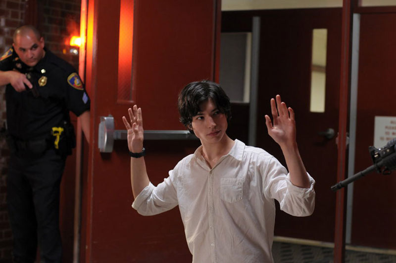 Kevin, okuduğu okulun yemekhanesindeki öğrencileri çocukluktan itibaren çok iyi kullanabildiği okuyla vurmuş, birçok kişinin ölümüne sebep olmuş, kısacası bir katliam gerçekleştirmiştir. Kendini ve kurbanlarını içeride kilitleyen kilidin kesilmesiyle dışarıya çıkması gereken Kevin, hiç tereddüt etmeden dışarıya çıkar. Zira bu onun hayatı boyunca sergilediği en büyük gösterisidir. Böylesine önemli bir oyunun ardından icraatını izlemek adına gelen seyircileri kucaklamak, onlarla buluşmak gerekir. Kevin da kendisini görmeye gelen güruha ve aslında o kalabalık içerisindeki annesine selam vermeyi en muhteşem şekilde gerçekleştirmekte kararlı gibidir. Hem teslim olurken seyirci kalabalığına adeta reverans yapması hem de ezeli düşmanı ya da sevdiğine inceden bir bakış atması akıllara durgunluk verir adeta.