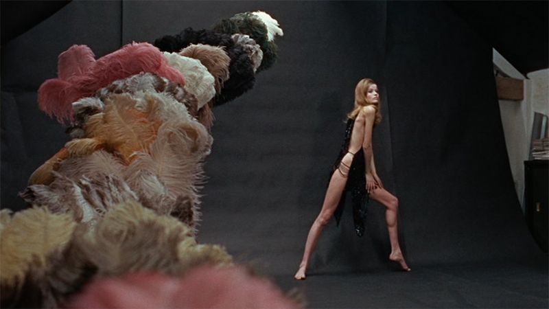 İşte filmde Thomas’ın oyun oynadığı bir sahne var ki bahsedilmeden geçilecek gibi değil. Güzeller güzeli bir model ile fotoğraf çekimi yaptığı sahnede bakın Thomas bu kez nasıl bir oyun oynar: Thomas stüdyosunda fotoğraf çekimi yapacaktır. Fotoğraf makinesini bir nevi penis olarak -zaten bir sonraki sahnede fotoğraf makinesini tam da penisinin hizasına ayarlamıştır tripod aracılığıyla- kullanır. Fotoğraf çekimini de seks olarak tahayyül eder. Thomas, bir seks objesi olarak bilinen pelüşlerle ortamı da oldukça uygun hale getirecek kadar titizdir ayrıca.