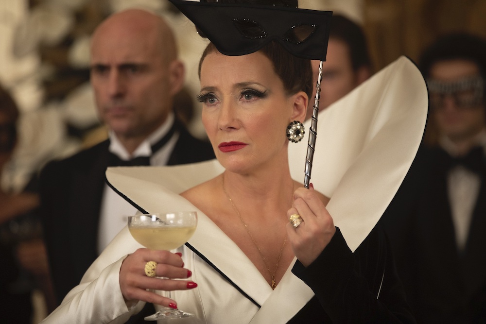 Estella’nın 12 yaşında şahit olduğu Barones’in Marie Antoinette balosu, Siyah-Beyaz Balosu (Cruella’nın Artie’nin ikinci el dükkanından aldığı kan kırmızısı bir elbiseyle ve bilgisayar çizimi olan yanan beyaz pelerinle görüldüğü yer) ve Estella’nın tüm konuklara siyah elbiseler ve siyah beyaz peruklar gönderdiği Gala sahnelerindeki Beavan ve ekibinin tasarladığı kostümler, detaylarıyla Cruella’yı ikonik ve modern bir görünüme kavuşturuyor.