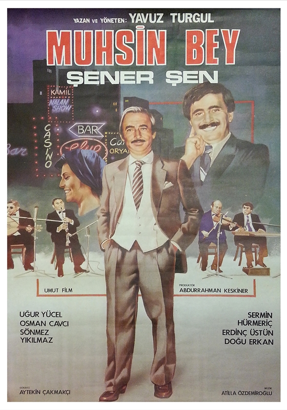 Önde takım elbise, samimi gülüşü ve emin tavrı ile Muhsin Bey. Arkada ise uğraşmak zorunda oldukları ve tabii ki müzik.