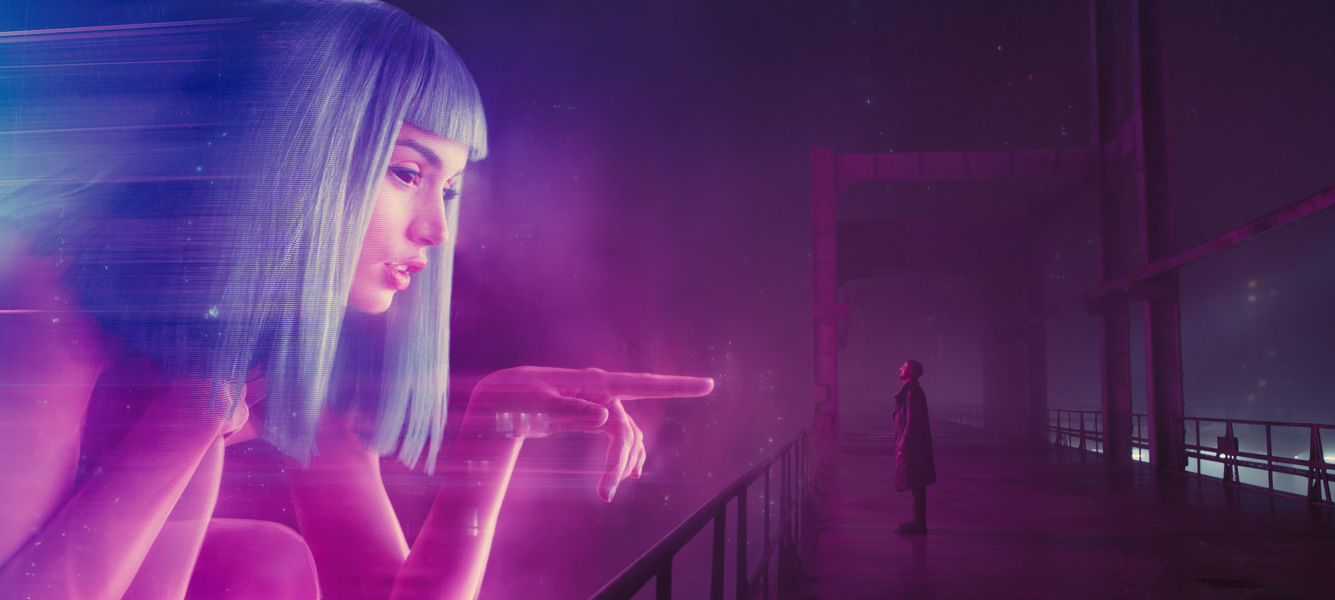Başkarakterimizin yine bir Blade Runner (replicant tetikçisi) olduğu filmde, aradan geçen otuz yılda insanlık hologram üretmeye de başlamıştır. Fakat ne yazık ki erkek egemen toplumun hâlâ devam etmesinden dolayı tüm hologramlar erkeklere hizmet etmek için üretilmektedir. K’nın evindeki Joi adlı seri üretime dâhil olan hologram da bunlardan biridir. Joi, genel geçer toplum kurallarına uygun yaratılmış bir ev kadını, sadık bir eştir. Joi, K’nın onu evde bekleyen, onunla sohbet eden, dertlerine ortak olan karısı rolünden çok daha fazlasını yaşamak ister ama. Çünkü bilir ki K da bunu ister aslında. Lakin bir sorun vardır: Haliyle hologramlar sadece görüntü olarak var olabilirler. Bu nedenle de seks yapacak konumda değillerdir. Bu problem ise hologramların replicantlar ile sekronize olabilmeleri ile çözülmüştür. İnsan, replicant ve hologramların adeta birbirine karıştığı bir dünyada replicantlar ile hologramın tek beden olup birbirini sarıp sarmaladığı sahne, filmin en ilginç anlarından birine ev sahipliği yapar.