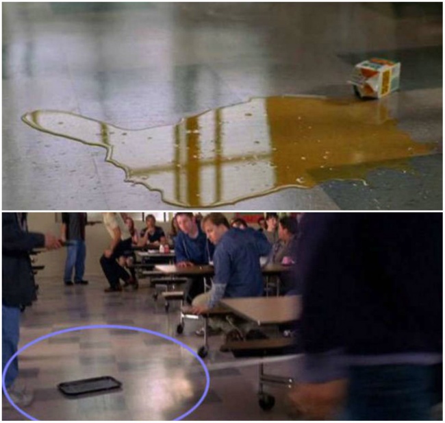 Spider Man’de Mary Jane’in döktüğü meyve suyu bir anda temizleniyor.