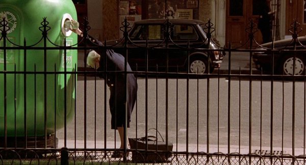 Farklı filmlerde inatla, geri dönüşüm kutusuna elindeki cam şişeyi atabilmek için büyük çabalar sarf eden yaşlı teyzemiz, hepimizin yüreğini parçalar adeta. Hem yaşlılık, hem çevreye duyarlılık gibi birçok önemli konuya ufacık bir sahneyle değinen Kieślowski’yi takdir etmekten başka ne gelir elden.